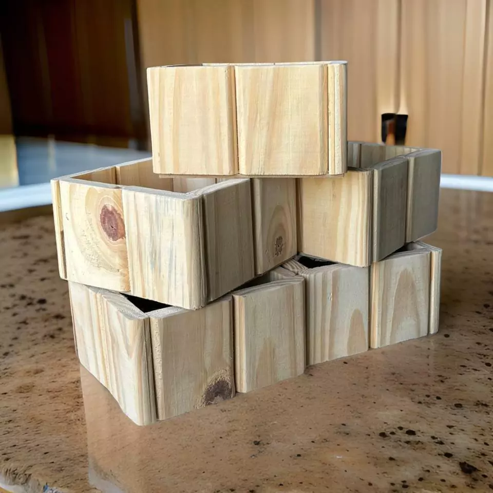 Kit de 5 Cachepots Estilo Caixote - Madeira Pinus